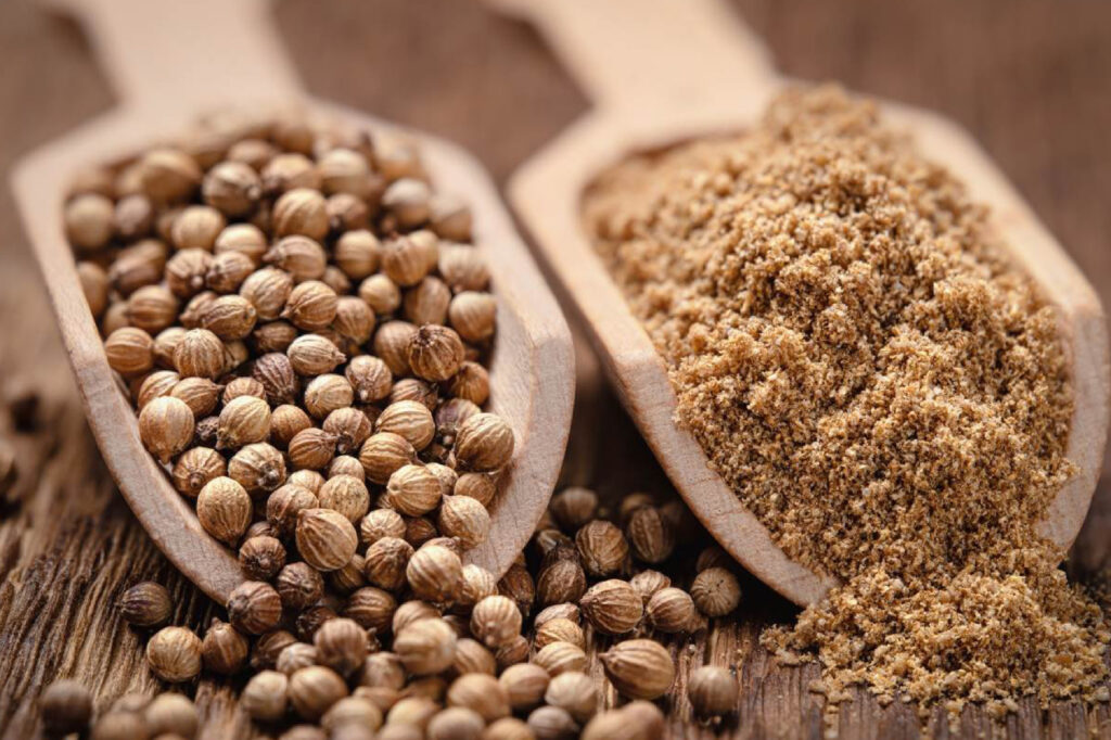 الثمار المجففة هي بذور الكزبرة. قد تشير كلمة “كزبرة” في تحضير الطعام إلى هذه البذور فقط (كتوابل)، وليس إلى النبات. تتمتع البذور بنكهة الحمضيات الليمونية عند سحقها، وذلك بسبب التربينات لينالول وبينين. توصف بأنها دافئة وجوزية وحارة وذات نكهة برتقالية. تُعرف أيضًا باسم البقدونس الصيني أو دانيا أو الكزبرة. جميع أجزاء النبات صالحة للأكل، لكن الأوراق الطازجة والبذور المجففة (كتوابل) هي الأجزاء الأكثر استخدامًا في الطهي